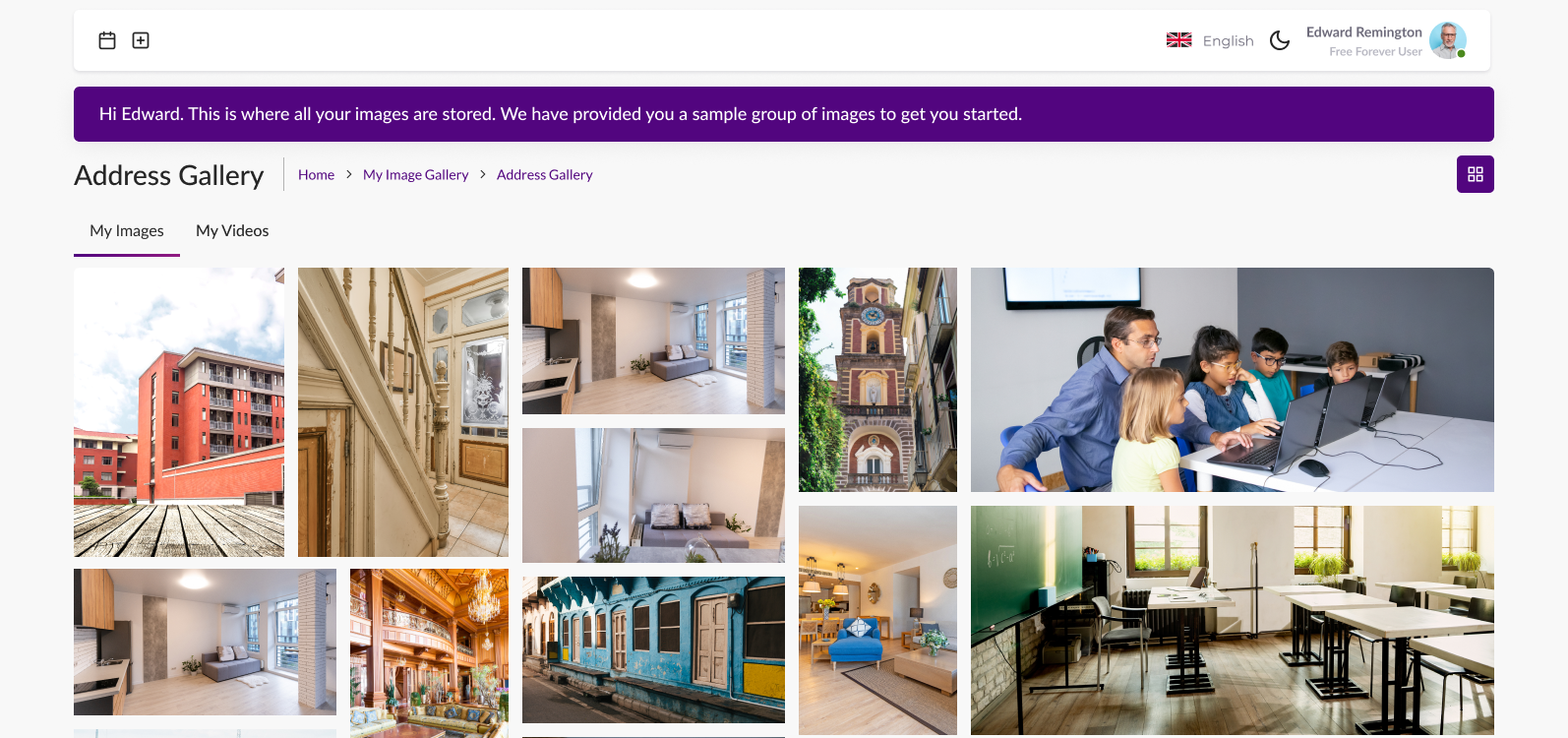 Every user has a dashboard that displays recent posts, mood analysis, storage usage and revolving random images from their image gallery.
